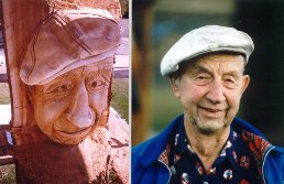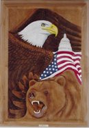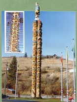 Here you will find everything from a memorial of Desert Storm (left), to wildlife totem poles. Several of Jonathan's monuments have been internationally published and televised. He is recorded in Ripley's Believe It or Not as having reportedly carved the largest carving in the world, which is the Famous Codger Pole Monument of Colfax Washington. The brainchild of Hollywood actor John Crawford, the pole sports the many-times life-size busts of over 52 hometown football players who held a grudge-match game 50 years after the original. Click on any picture to enlarge and enjoy.